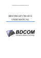 INTRODUCTION BDCOM GP1704-4F-E is a handy, flexible and standard device, with high integration, about connection to the net. It is a high-end multi-in-one terminal product up to IEEE802.11b/g/n standard, providing connection with high performance for home users and individual merchants. Main Characteristics: following ITU-T G.