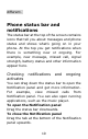 different. Phone status bar and notifications The status bar at the top of the screen contains icons that tell you about messages and phone status and shows what’s going on in your phone. At the top you get notifications when there is something new or ongoing. For example, new message, missed call, signal strength, battery status and other information appear here. Checking activates notifications and ongoing You can drag down the status bar to open the Notification panel and get more information.