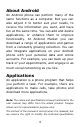 About Android An Android phone can perform many of the same functions as a computer. But you can also adjust it to better suit your needs, to receive the information you want, and have fun at the same time. You can add and delete applications, or enhance them to improve functionality. At Android Market you can download a range of applications and games from a constantly growing collection. You can also integrate applications on your Android phone with your personal data and online accounts.