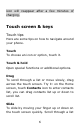 or move quickly, slide across the touch screen (drag quickly and release). Double-touch Touch quickly twice to zoom in/out. For example, double-touch a picture in Gallery to zoom in/out. Zooming tips When looking at maps, webpages or photos, place two fingers on the touch screen at once and pinch them together to zoom out or spread them apart to zoom in. Note: Use the zoom function when you view photos, maps or when you browsing the web.