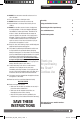 CARE AND MAINTENANCE - cont. fig. 13 fig. 15 fig. 14 fig. 17b fig. 16 fig. 17a 4 Inspect the rotating brush for a build-up of debris. Remove anything wound around the brush by carefully cutting it with scissors. The brush roll is equipped with a raised cutting guide to make inserting scissors easier. Avoid damaging or cutting the bristles. (fig. 13) 5 Use a flashlight to inspect inside the air duct at the bottom of the main body and remove any debris or blockages that may be there.