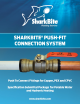 SYSTEM DATA SHEET System Description The SharkBite Push-Fit quick-connect plumbing system is the easiest and most dependable way to join copper, CPVC or PEX pipe in any combination—with no soldering, clamps, unions or glue. Available in an assortment of over 200 fittings and sizes ranging from ¼” to 2” copper tube size (CTS). Applications Tubing: Hard drawn copper pipe Type K, L and M and annealed Type M not to exceed 3/8 nominal complying with ASTM B 88, PEX tubing complying with ASTM F 876 or CSA B137.
