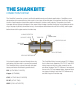 THE SHARKBITE ® CONNECTION SYSTEM The SharkBite connection system is certified for potable water and hydronic applications. SharkBite uses an advanced push-to-connect design that works in two stages. When the pipe is inserted into the fitting it passes the first stage through a release collar and then through a stainless steel grab ring. The grab ring has teeth that open out and grip onto the pipe. At the second stage the pipe is pushed through an o-ring protector which aligns the pipe.