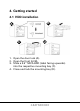 . Getting started 4.1 HDD installation B A C D 1. Open the door lock (A). 2. Open the front lid (B). 3. Slide a 3.5“ SATA HDD (label facing upwards) into the respective mounting bay (C). 4. Close and lock the mounting bay (D).