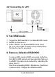 4.2 Connecting to a PC 5. Set RAID mode 1. Toggle the RAID switch to the desired RAID mode. 2. Switch on the device. 3. Press “Mode”. The desired RAID mode is set. As soon as the LED for HDD activity flashes blue the device may be accessed. 6. Remove defective RAID HDD In case a HDD inside a RAID array gets defective, the LED for HDD activity will permanently flash red. In a RAID 1 the data can be restored by rebuilding the array (see 7.). Data from an existing RAID 0, Standard or Combined mode are lost.