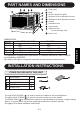 PART NAMES AND DIMENSIONS D B E C A Front panel Grille Air filter (behind the grille) Up/Down air flow adjustment louvers Left/Right air flow adjustment louvers Cabinet Ventilation lever Control panel Stopper screws (on left and right side) Power cord AF-A07CE, AF-A09CE AF-A12CE MODEL A (mm) 470 560 B (mm) 350 375 C (mm) 583 (center 590) 600 (center 610) D (mm) 255 239 33 (center 40) 30 (center 40) E (mm) This equipment complies with requirements of Directives 89/336/EEC and 73/23/EEC as amended by 93/6