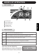 MODES OF OPERATION PART NAMES AUTO SWING 4 Super Quiet 5 6 LOW COOL 7 MED COOL FAN 3 8 2 9 10 COOLER HIGH COOL OFF 1 THERMOSTAT SELECTOR WAIT THREE MINUTES BEFORE RESTARTING ENGLISH Control panel Auto swing switch Thermostat knob Selector knob Ventilation lever SELECTOR KNOB Use to select the desired mode. OFF Both the fan and cooling operation are off. FAN This setting can be used to circulate air whenever cooling is not desirable.