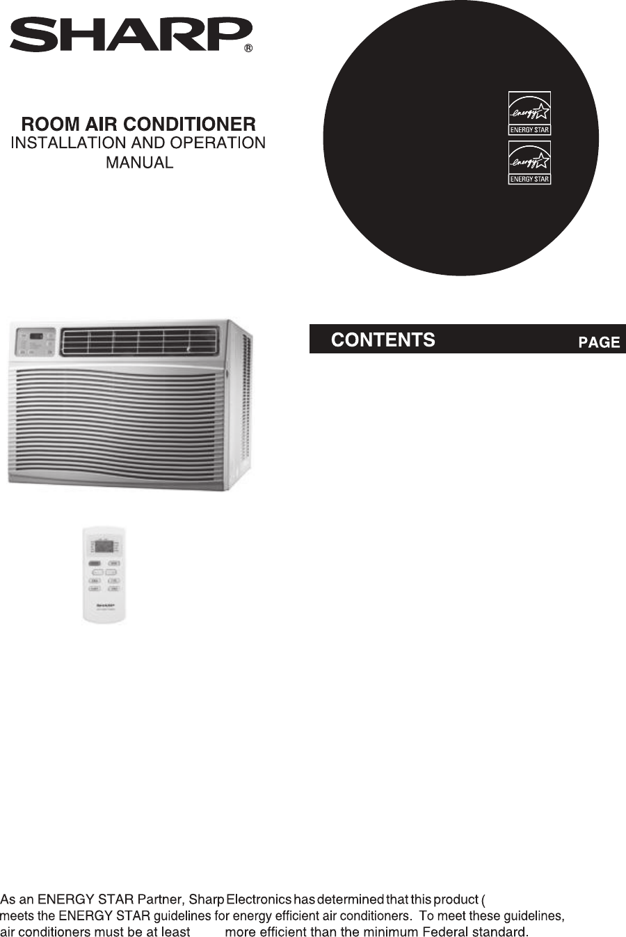 This INSTALLATION AND OPERATION MANUAL explains the proper use of your new Sharp Air Conditioner.