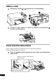 FIXATION DES MAGASINS 2 Fixez le plateau de sortie comme indiqué sur l'illustration. Orientez cette saillie vers l'imprimante. Cette imprimante est équipée des connecteurs d'interface parallèle et USB. Les câbles d'interface pour raccorder l'imprimante à votre ordinateur ne sont pas fournis avec l'appareil. Veuillez acheter le câble approprié pour votre ordinateur.