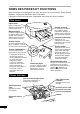 DEBALLAGE 1 Retirez les rubans à montrés sur les illustrations. 2 Ouvrez le capot avant, et retirez le matériau de protection montré sur l'illustration. FIXATION DES MAGASINS Fixez le magasin papier et le plateau de sortie sur l'avant de l'imprimante. Suivez les étapes indiquées ci-dessous. 1 Fixez le magasin papier fermement vers le bas en poussant les deux bords. Appuyez ici pour fixer correctement le magasin à papier. Assurez-vous que le magasin papier est bien fixé à l'imprimante.