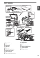 PART NAMES Original cover SPF (AL-1457D) RSPF (AL-1555) (AL-1217D) Original guide 1 Feeding roller cover Original exit area Original feeder tray Interface USB interface Parallel interface SPF (AL-1457D) RSPF (AL-1555) scan area 1 2 5 6 7 3 8 9 10 11 4 Multi-bypass tray (AL-1457D, AL-1555) TD cartridge Drum cartridge Paper tray 2 (AL-1555) Single bypass (AL-1217D) 12 7 5 13 14 3 15 1 2 3 4 5 6 7 8 9 Original table Operation panel Front cover Paper tray Side cover Side cover open button