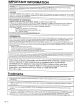 Contents IMPORTANT INFORMATION 1 Trademarks. . . . . . . . . . . . . . . . . . . . . . . . . . . . . . . . . . . . . .. 2 DEAR SHARP CUSTOMER 3 IMPORTANT SAFETY INSTRUCTIONS 3-5 6 Supplied Accessories QUICK REFERENCE QUICK INSTALLATION TiPS 7 Using the Remote Control Unit . . . . . . . . . . . . . . . .. 7 Preparation Antennas 8 Installing Batteries in the Remote Control Unit. ..