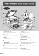 PART NAMES AND FUNCTIONS GETTING STARTED Overall layout Part names and functions Document feeder cover Open to make copies from the original table. Paper tray Holds 250 sheets of copy paper. Original table All originals which cannot be copied from the SPF must be copied here. Side cover Open to remove misfeeds and to service the copier. Handles Use to move the copier. Power switch Press to turn copier power on and off. Operation panel All copier controls are located here for easy operation.