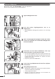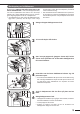 5 Ta bort det felmatade papperet. 6 Vrid på pappersmatardelens lock såsom visas på bilden för att öppna det. 7 Ta bort det felmatade papperet. 8 Öppna pappersledaren och ta bort det felmatade papperet. 9 Stäng pappersmatardelens lock och sedan det övre locket. 10 Skjut efterbehandlaren in mot kopiatorn och haka den på plats. ● Kontrollera att felmatningsmeddelandet slocknat.