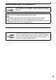 CAUTIONS Caution label on the machine The label ( ) in the fusing area of the machine indicates the following: : Caution, risk of danger : Caution, hot surface Cautions on using the machine Follow the cautions below when using this machine. Warning: • The fusing area is hot. Exercise care in this area when removing misfed paper. • Do not look directly at the light source. Doing so may damage your eyes. • Do not switch the machine rapidly on and off.