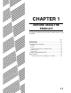 CHAPTER 1 BEFORE USING THE PRODUCT This chapter contains basic information that should be read before using the product. Page INTRODUCTION .................................................................................... 1-2 MAIN FEATURES ................................................................................... 1-3 PART NAMES AND FUNCTIONS .......................................................... 1-9 ● Exterior...................................................................................
