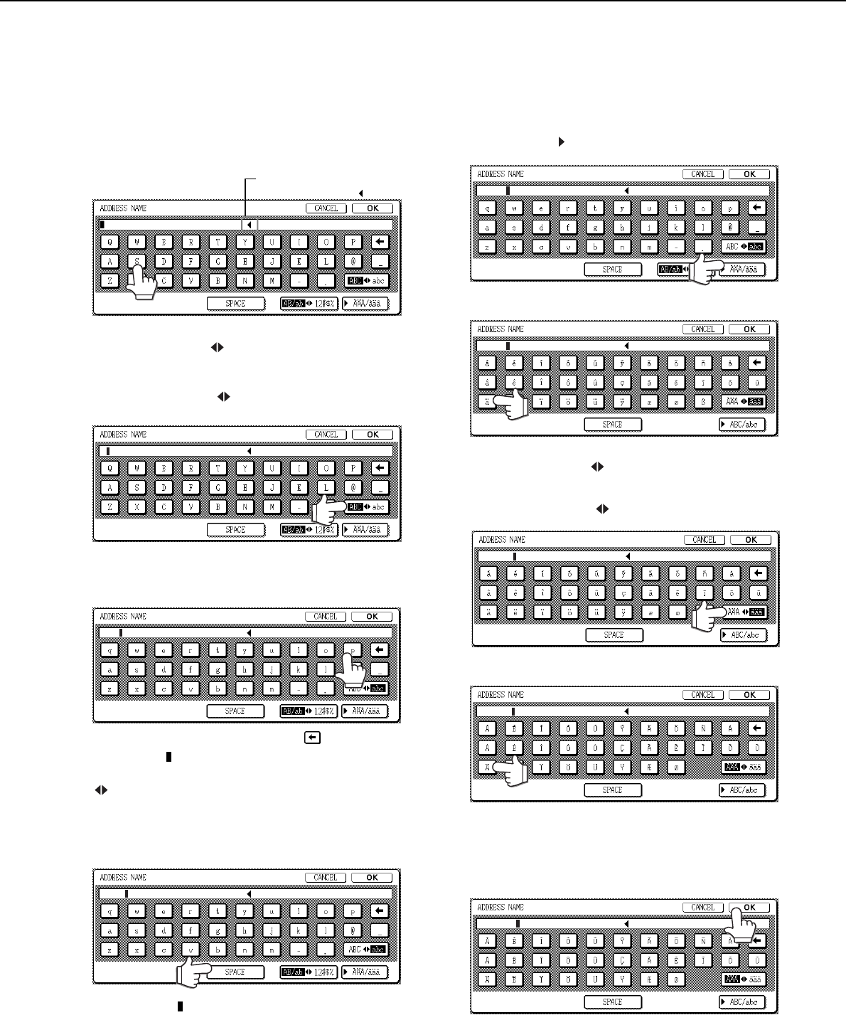 To enter or edit characters in setting screens such as auto dial key programming screens, follow the steps below.