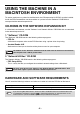 INSTALLATION ENVIRONMENT AND INSTALLATION PROCEDURE This manual explains the procedures for installing the software in a Windows environment (TCP/IP network environment) and in a Macintosh environment. Refer to the following table for the appropriate procedure for your environment. Function Operating system Windows environment Printer function Macintosh environment Network scanner function Windows environment Procedure to follow 1. 2. 1. 2. 1. 2. "SETTING THE IP ADDRESS OF THE MACHINE" (p.