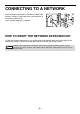 CONNECTING TO A NETWORK After the network expansion kit has been installed in the machine, connect a LAN cable to the LAN connector of the network expansion kit. Use a network cable that is shielded. HOW TO RESET THE NETWORK EXPANSION KIT To reset the network expansion kit, turn on the power while holding down the status button on the network expansion kit. Continue to hold down the status button until a beep sounds.