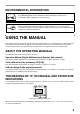 CONVENTIONS USED IN THIS MANUAL Warning Warns the user that injury may result if the contents of the warning are not properly followed. Caution Cautions the user that damage to the machine or one of its components may result if the contents of the caution are not properly followed. Notes provide information relevant to the machine regarding specifications, functions, performance, operation and such, that may be useful to the user.