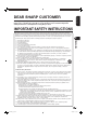 ENGLISH BD-HP20U FRANÇAIS BD-HP20U MODE D'EMPLOI MANUAL DE OPERACIÓN Sharp Plaza, Mahwah, New Jersey 07430-2135 SHARP CORPORATION Printed in Malaysia Imprimé en Malaisie Impreso en Malasia TINS-D348WJQZ 07P09-MA-NG OPERATION MANUAL MODE D'EMPLOI MANUAL DE OPERACIÓN ESPAÑOL OPERATION MANUAL SHARP ELECTRONICS CORPORATION BLU-RAY DISC PLAYER LECTEUR DE DISQUE BLU-RAY REPRODUCTOR DE DISCOS BLU-RAY
