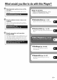 at wou youliketo dowiththisPlayer? _ Watching high quality movies on Blu= ray discs This Playeroffersfullhigh-definitionBlu-raydisc playback. _ njoying contents different kinds of discs and Refer to !'Getting Startedll (P: ! !)to O introduction (pp. 1-13) Explains the important operation information, Use this Player to enjoy various types of optical discs such as DVDs and CDs that contain various multimedia content. _) Connection {pp. 14-19) Shows the connecting Player.