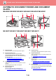 BEFORE USING THE MACHINE►BEFORE USING THE MACHINE AUTOMATIC DOCUMENT FEEDER AND DOCUMENT GLASS MX-M2651/MX-M3051/MX-M3551/MX-M4051/MX-M5051/MX-M6051 (1) (3) (2) (4) (5) (6) (7) (8) MX-M3071/MX-M3571/MX-M4071/MX-M5071/MX-M6071 (2) (3) (4) (5) (6) (7) (8) (1) Paper feed roller This roller rotates to automatically feed the original. (5) Original exit tray The original is discharged to this tray after scanning. (2) Document feeding cover Open this cover to remove an original misfeed.