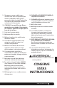 9. Mantenga sus manos, cabello, ropa y utensilios fuera de la taza al procesar para reducir la posibilidad de daños graves a personas o de dañar la unidad. Puede utilizar una espátula, pero únicamente cuando el artefacto no esté funcionando. 10. CUIDADO: Las cuchillas son filosas, manéjelas con cuidado. Al manipular las cuchillas, agárrelas siempre por la base de las mismas. 11. Evite tocar las partes móviles. 12. NO intente afilar las cuchillas. 13.