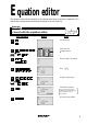 E quation editor The equation editor allows equations to be viewed just as they are written in textbooks. This aids student comprehension and allows mistakes to be found quickly. Example Input the equation and see how it can be easily viewed with the equation editor. Key Operation Display Notes Clear the display. 1 Select CALC and (Integral function) 2 Pen Touch (or ) Enter the range of the integral. 3 Enter 4 Complete equation input. 5 6 7 (or ) ] Pen Touch Calculate the expression.