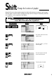 Features Shift (Change the location of graphs) Graph shift function helps students grasp the relationship between an equation and its graph. Shift the graph’s location without changing its shape, and the change is immediately reflected in the equation on the right side of the display. Example When the graph of y = x2 is shifted downward, how does this affect the equation? 1 2 Display Notes Enter SHIFT/CHANGE mode. ] Key Operation If SHIFT is not already . highlighted press ] Select shift.