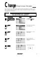Features Change (Change the shape of the graphs) Graph change function helps students grasp the relationship between an equation and its graph. Change the shape of the graph, and the change is immediately reflected in the equation on the right side of the display. Example When the graph of y = x2 is changed, how does it affect the equation? Key Operation Display Notes 1 Enter SHIFT/CHANGE mode and specified ( CHANGE ). 2 Select change. Cursor will move to the equation menu.