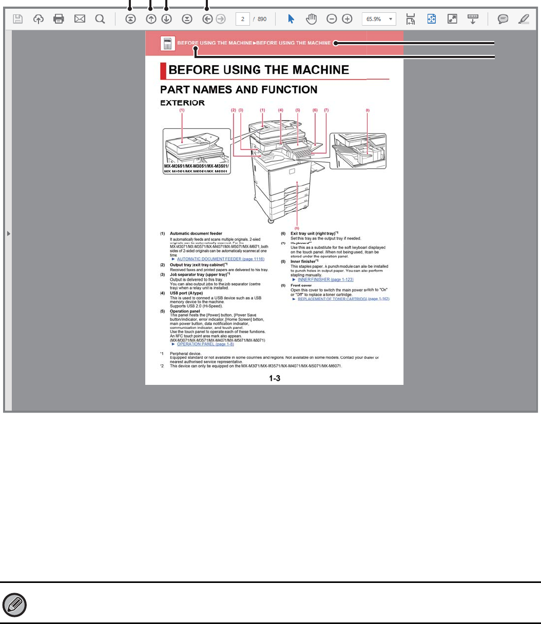 The following explanation assumes that Adobe Acrobat Reader is being used (Some buttons do not appear in the