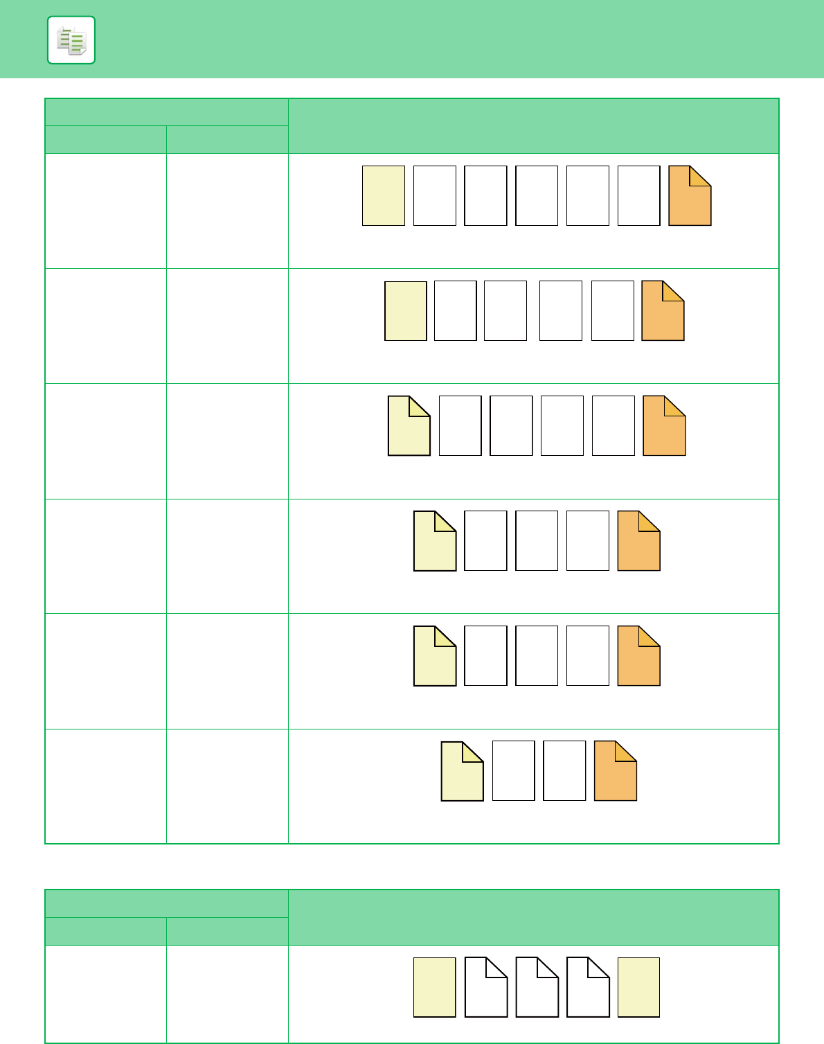 Inserts a front cover at the beginning of copies, and makes a 2-sided copy on the fifth