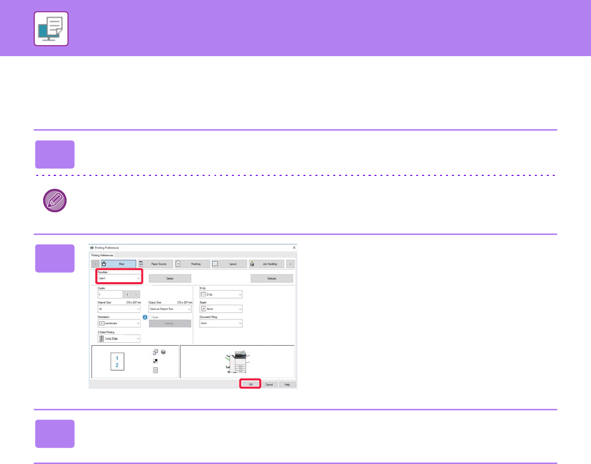 You can specify the saved favorites through just one click to apply frequently used settings or complicated settings to