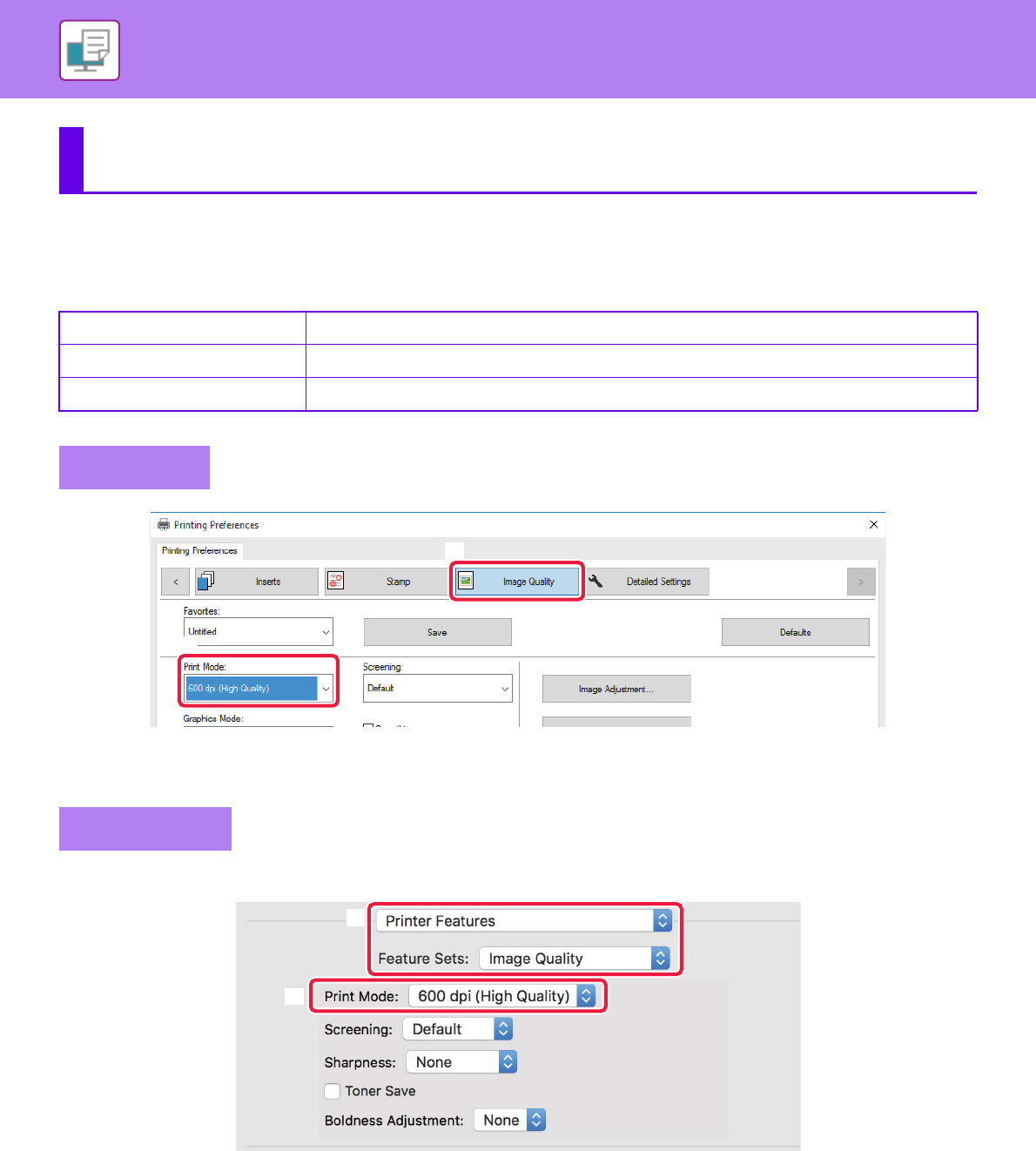600 dpi This mode is suitable for printing data such as regular text or a table.