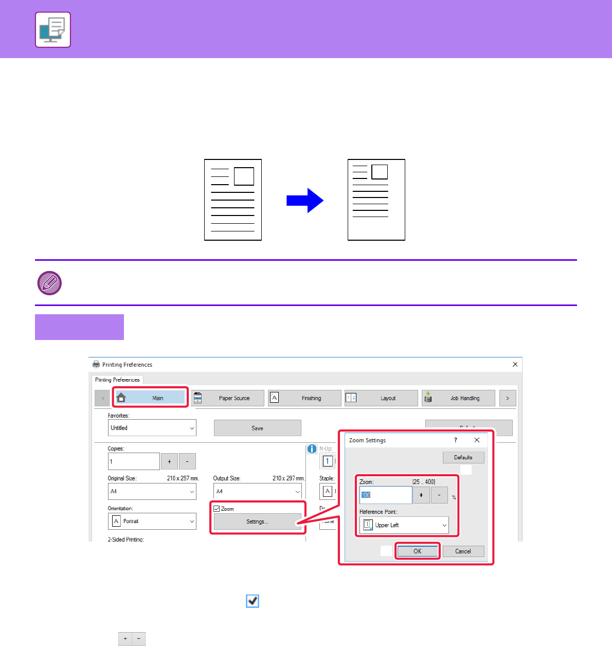 ENLARGING/REDUCING THE PRINT IMAGE (ZOOM