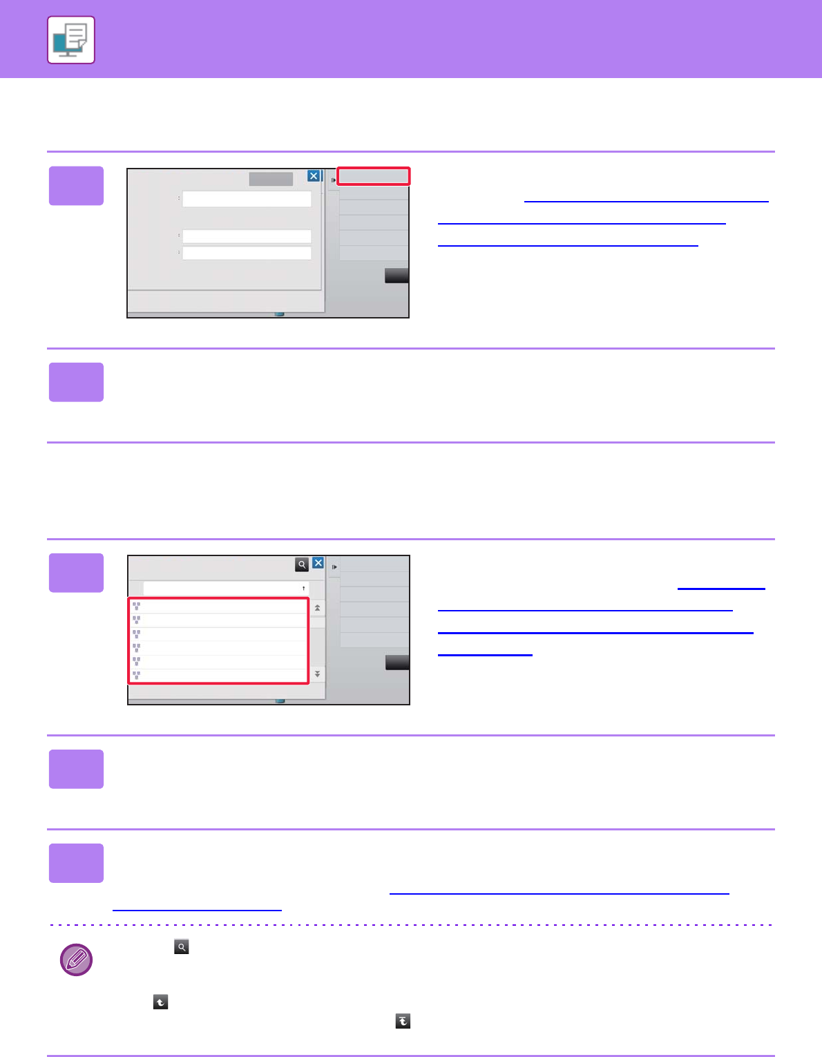• Tap the icon and enter a keyword to search for a workgroup, server, or network folder. To enter text, see "User's