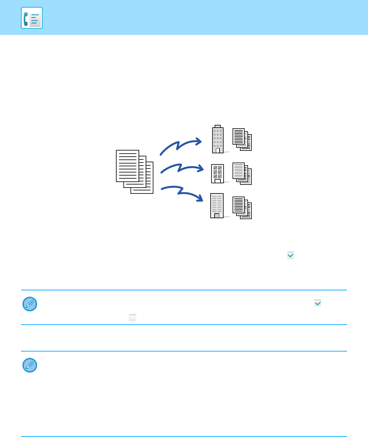 You can send a fax to multiple destinations in a single operation when, for example, sending a report to branch offices in