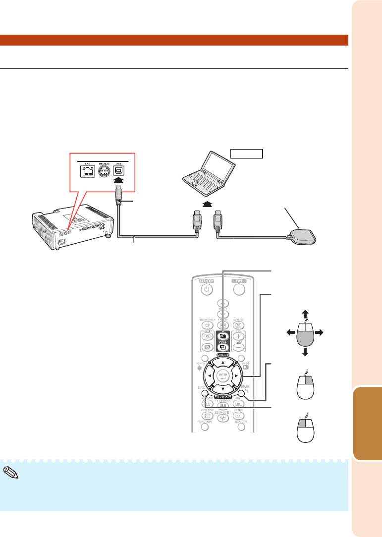 When connecting the projector and the computer with a USB cable, you can use the
