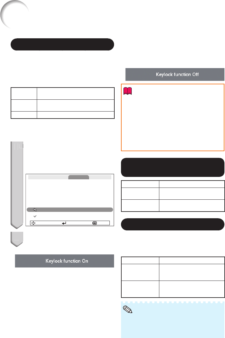 Off Turns off the Keylock function.