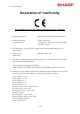 No. 2021-08-683 Declaration of Conformity For translation refer to the pages following from page 3 onwards 1. Product description Digital Full Color Multifunctional System 2. Name and address of manufacturer Sharp Corporation 1 Takumi-cho, Sakai-ku, Sakai-City, Osaka 590-8522, Japan 3. This declaration of conformity is issued under the sole responsibility of the manufacturer 4. Object of the declaration MX-8081, MX-7081 5.