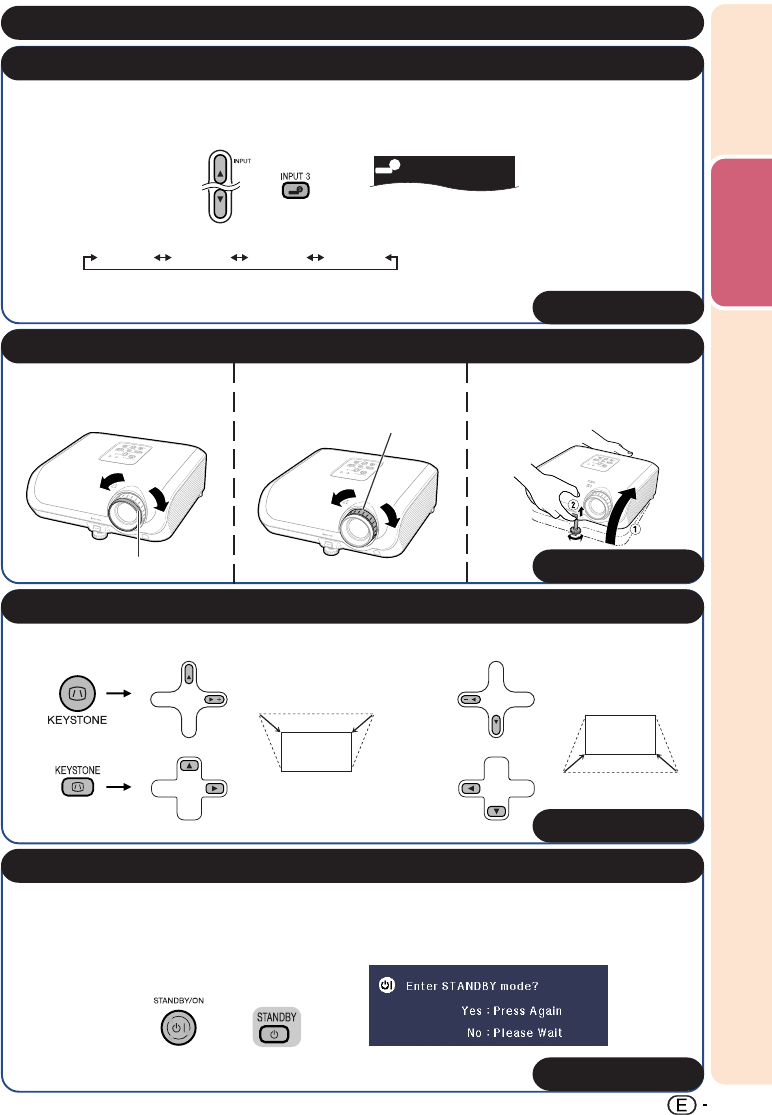 • When pressing the INPUT button on the projector, input mode switches in the following