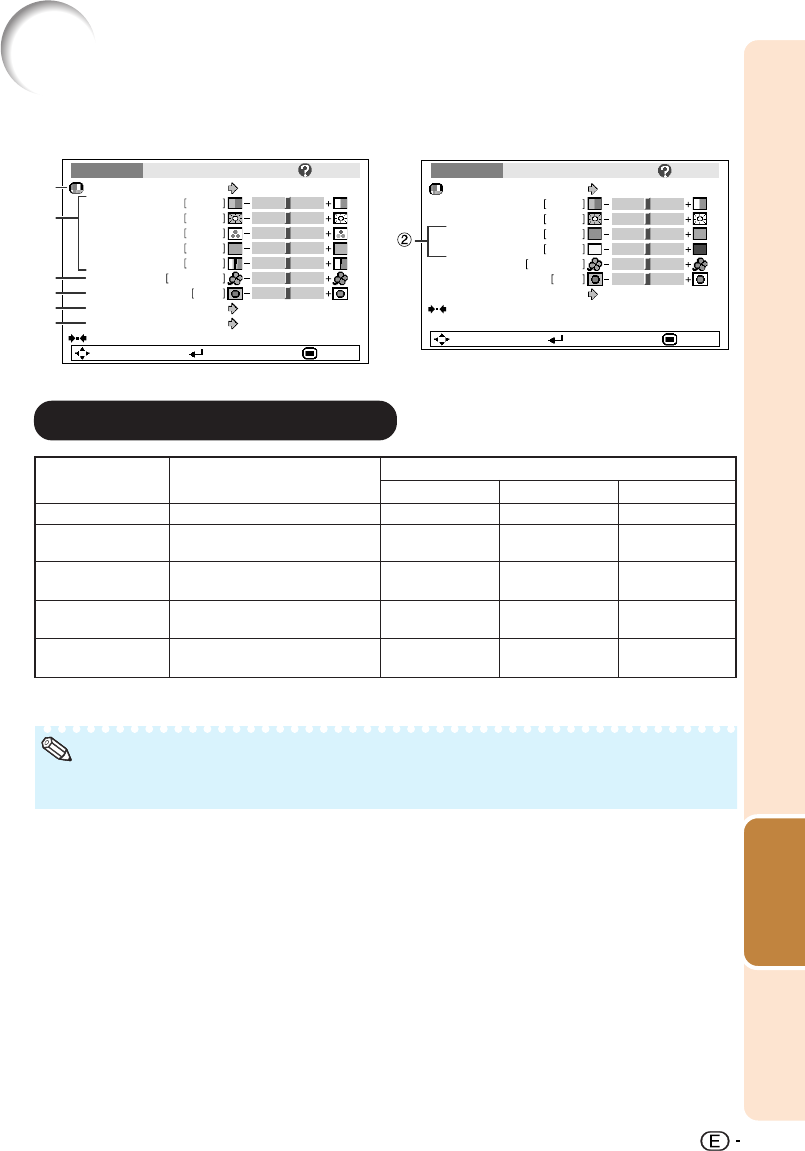 • You can set or adjust each item in the “Picture” menu to your preference. Any changes you make are