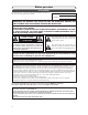 Before you start Precautions For future reference, record the model and serial numbers (located on the rear of the Unit) in the space provided. Model No.: Serial No.: WARNING: TO REDUCE THE RISK OF FIRE OR ELECTRIC SHOCK, DO NOT EXPOSE THIS APPLIANCE TO RAIN OR MOISTURE. CAUTION:TO PREVENT ELECTRIC SHOCK, MATCH WIDE BLADE OF PLUG TO WIDE SLOT, FULLY INSERT.