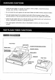 HANDLING CAUTIONS Install the cash register in a location not subject fo direct sunlight, unusual temperature changes, high humidity, or splashing water. Do not operate the cash register with wet hands, Water can cause internal component failure, The cash register plugs into any standard wail outlet (official {(nominal) voltage). Other electrical devices on the same electrical circuit can cause the cash register to malfunction. Clean the cash register with a dry, soft cloth.