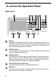 A Look at the Operation Panel Upper panel 1 2 DOCUMENT COMMUNICATION SYSTEM 8 e-mail 9 4 5 6 7 (FO-DC535) (FO-DC635) HALF TONE ALARM ALARM STANDARD TONER TONER FINE LINE IN USE SUPER FINE Network ULTRA FINE CONTRAST 3 FAX1 FAX2 Network DATA DATA ON LINE ON LINE RESOLUTION ON LINE 10 11 1 Display This displays messages and prompts to help you operate the machine.