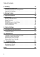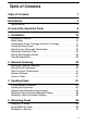 Table of Contents Table of Contents Table of Contents 1 Introduction 3 Specifications . . . . . . . . . . . . . . . . . . . . . . . . . . . . . . . . . . . . . . . . . . . 3 A Look at the Operation Panel 1. Installation 8 12 Unpacking Checklist . . . . . . . . . . . . . . . . . . . . . . . . . . . . . . . . . . . . . 12 Basic Setup. . . . . . . . . . . . . . . . . . . . . . . . . . . . . . . . . . . . . . . . . . . . 13 Installing the Toner Cartridge and Drum Cartridge . . . . . . . . . . . . . .