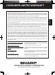 LIMITED WARRANTY Consumer Electronics Products Congratulations on your purchase! Sharp warrants that this product is free, under normal use and maintenance, from any defects in material and workmanship. If any such defects should be found in this product within the applicable warranty period, Sharp shall, at its option, repair or replace the product as specified herein.
