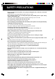 SAFETY PRECAUTIONS • Do not use the unit if the power cord or plug is damaged or the connection to the wall outlet is loose. Electrical shock, short circuit and/or fire may occur as a result. • Do not damage, break, coat, forcefully bend, pull, twist, bundle, pinch or place heavy objects on the power cord. If the power cord is damaged, fire and/or electrical shock may occur as a result. • Do not operate at voltage other than AC 220~240V. Fire and/or electrical shock may occur as a result.