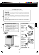 INSTALLATION HOW TO MOUNT THE UNIT ON A WALL HOW TO PUT THE UNIT ON A TABLE MOUNTING THE STAND CAUTIONS WHEN MOUNTING THIS PRODUCT TO A WALL 1 Remove the front panel. • At the same time, also remove the prefilter, stamina-power carbon and the HEPA filter. 1 Front panel • Choose strong point on the wall with firm piller or timber etc. for mounting. • Never mount the unit to a thin wall or plasterboard of insufficient strength. The unit may drop as a result.